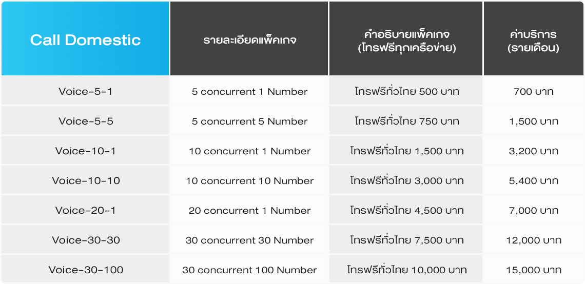 ** การแสดงเลขหมาย โชว์หมายเลข DID ที่บริษัทจัดหาให้ และ สมัครใช้บริการกับแพ็คเกจ **