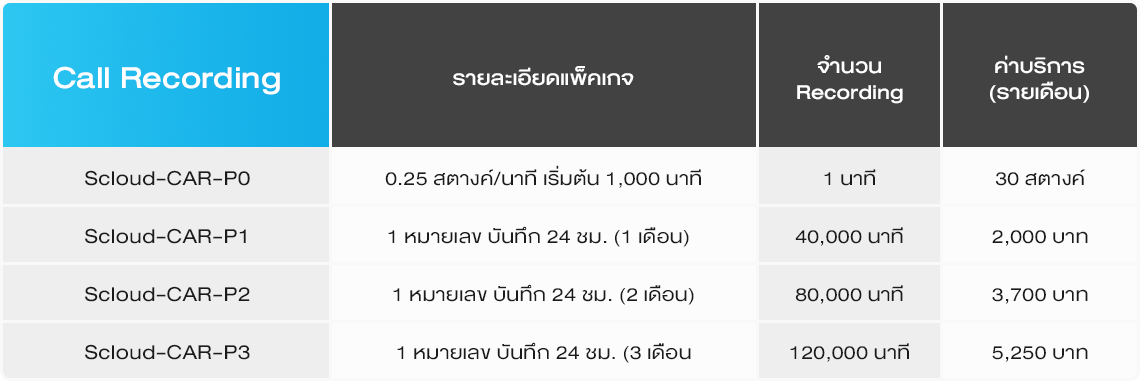 ** ลูกค้าต้องการเพิ่ม Recording สามารถติดต่อเข้ามา เพื่อ Add-On ในราคาพิเศษ **