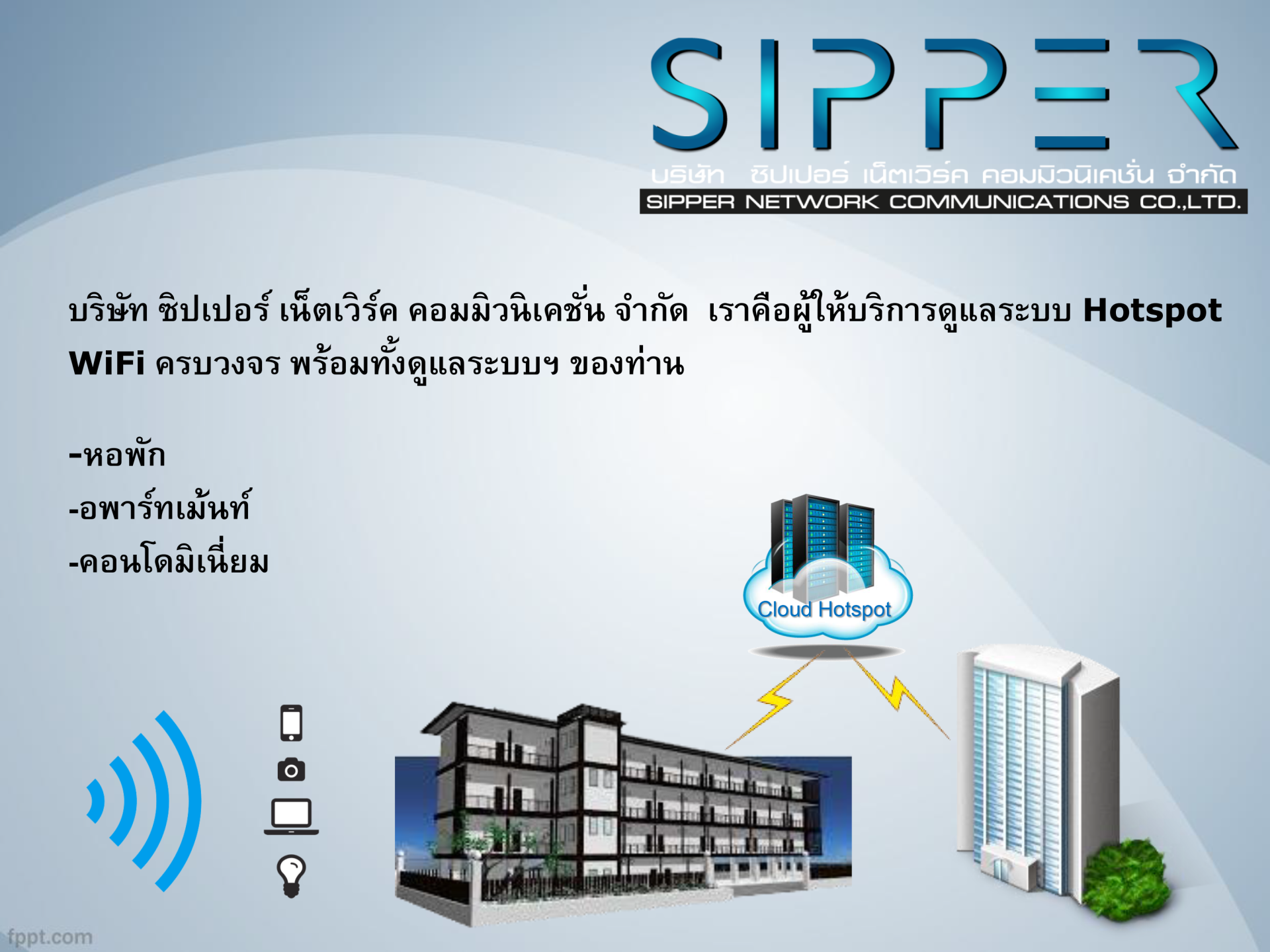 Cloud Hotspot เป็นการให้บริการในรูปแบบระบบ Auto Sync Cloud Configuration คือ ระบบการตั้งค่าอุปกรณ์ Gateway hotspot ผ่านระบบ cloud เพื่ออำนวยความสะดวกให้แก่ผู้ดูแลระบบ และ ลดต้นทุน สามารถจัดทำคูปองและกำหนดวันเวลาใช้งานได้ รวมไปถึงกำหนดแบรนด์วิธ การใช้งานอินเทอร์เน็ต ให้กับผู้ใช้บริการ เช่น สมาร์ทโฟน, สมาร์ททีวี, แท็ปเล็ท เป็นต้น ผู้ดูแลสามารถตรวจสอบอุปกรณ์ที่เชื่อมต่อระบบ Cloud Hotspot แบบ Real Time พร้อมทั้งให้บริการ เก็บ Log พรบ.คอมพิวเตอร์ 2560